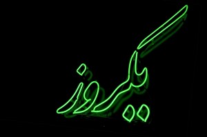 Taraneh Hemami also has a couple pieces in the show, including Yekrooz, a green neon sign that spells out “one day” in Persian, and Turning Green, a large laser-cut green wool rug that traces a street map of Tehran. The rug’s central placement on the gallery’s floor unifies the exhibit while referencing Mir Hossein Mousavi’s oppositional Green Movement. It’s also a sly pun on Iran’s more Western-friendly name, Persia, and the ubiquitous carpets of the same name, reflecting the still-fraught relationship between Iran and U.S.