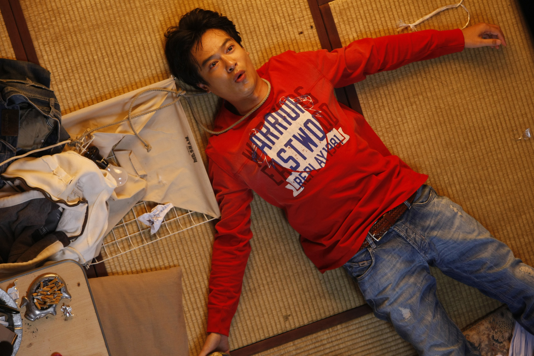 Ratanaruang’s second film with Asano and Doyle, Invisible Waves (2006), proceeds in a similarly languid fashion. Passive hitman Kyochi (Asano) poisons his girlfriend, who is also the mistress of his mobster boss, then goes on the lam across Southeast Asia, which as shown here is much less exciting than it sounds. Kyochi endures a Kafka-esque boat ride in a janky cruise ship cabin and briefly wanders through Phuket, getting mugged in a fleabag hotel before the boss’s boys catch up with him. Asano’s quiet charisma anchors the film, along with a dark, fatalistic humor and Christopher Doyle’s brilliant compositions. A bit more linear than Last Life, the film nonetheless meanders similarly through its narrative without a huge amount of action. Mysterious blood smears, a cute baby, karaoke-loving hatchet men, and cameos by Hong Kong performers Maria Cordero and Eric Tsang populate the stark scenario.