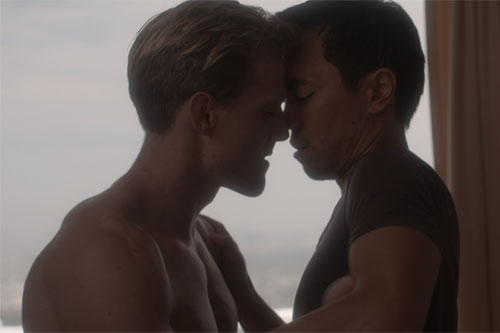The film also includes the reliable motif of cute boys tearing off their tank tops and snogging at regular intervals during the film. Just like you can expect a song and dance number every thirty minutes in a Bollywood movie, in gay indie films you can pretty much set your watch by when the attractive lead characters will start a makeout session, and Eat With Me is no exception, as Elliot strips down and hooks up on a regular basis throughout the movie.