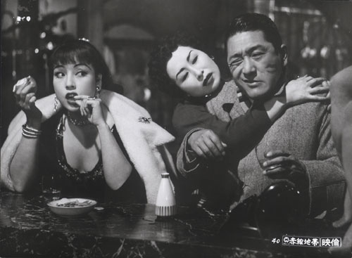 The PFA series concludes with Mizoguchi’s last movie, Street of Shame (1956), which is an excellent example of Mizoguchi’s use of film to examine social problems. The story concerns a group of prostitutes in postwar Tokyo who struggle to overcome an andocentric culture insensitive to the needs of women. In a role that’s a departure from her parts in the period films Rashomon and Ugetsu, Machiko Kyo plays Mickey, a material girl who’s not above stealing her co-workers’ customers or blithely overextending her credit at local shops. Ayako Wakao as Yasumi is a no-nonsense working girl who plans to escape the brothel by becoming a moneylender and shopkeeper. The men in the film are for the most part weak, craven, or venal, preying on the female protagonists and only valuing them for their bodies or their beauty, or despising them for their vocation. Yet Mizoguchi makes it clear that the women are prostitutes only because they are given little other choice in society. In one amusing scene one of the women who’s left the profession to marry a small-town cobbler returns to the brothel. She laments that marriage is worse than selling her body to strangers as her husband forces her to work in the shop from morning to night, then expects dinner and sex at the end of the day. Mizoguchi’s narrative uses the women’s plights as a critique of capitalism, an exploration of the uncertainty and despair of post-war Japan, and an indictment of the constraints of a patriarchal society.