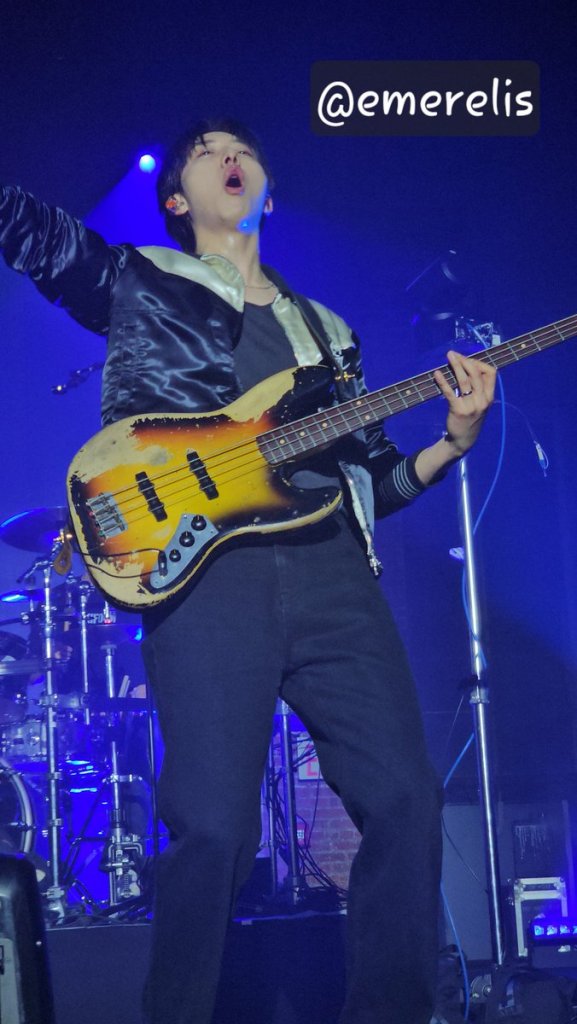 Yonghwa also repeated a version of the same ments as he had in New York, but he did it with such sincerity that it seemed very naturalistic. The man is a born entertainer, not least in his ability to convincingly deliver his lines night after night. As with the New York show, he kept up his running dialog with the audience almost exclusively in English, with a bit of Korean thrown in. He also expounded on his love for tacos, which he’d also eaten in New York. I hope someone takes him on a taco crawl through Boyle Heights the next time he’s here so he can have some real Mexican food. Yonghwa also threw out a few random Spanish phrases like “Te Amo” and “Hola!” He also dropped more slang, at various points in the show randomly shouting phrases like “Awesome!” “Bussin!” “Slay!” “Periodt!”and “Facts!” and at one point claimed “I am a language genius.” He also continued his swearing streak, at one point shouting “Make some fucking noise!” to the delight of the audience. Once again his jumping was much more restrained than usual, restricted to a few modest hops and spins. But that isn’t to say that he was standing still, as he was in constant motion during the entire show, whether dancing, swaying, tossing his mic, or waving his arms, as well as playing guitar or piano.